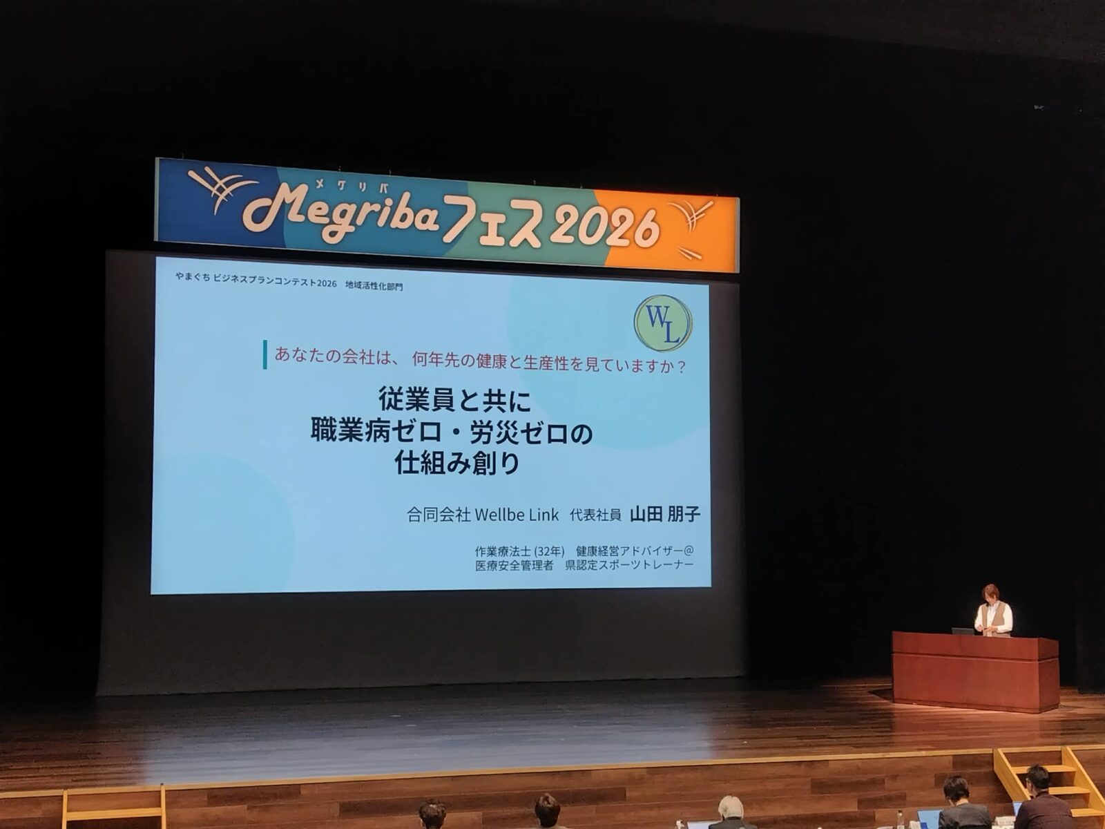 2026年1月17日(土曜日)山口市 KDDI維新ホール にて開催されたやまぐちビジネスプランコンテストに合同会社WellbeLink 代表社員山田朋子が出場いたしました。残念ながらグランプリ受賞には至りませんでしたが、地域活性部門の3社に最終選考されたことを自信に事業を展開いたします。早速オーディエンスの企業様からは事業連携の打診をいただいております。 現在モデル企業様募集中です。①初期調査可能企業様 ②年間契約可能企業様ともにモデル価格を設定中です。